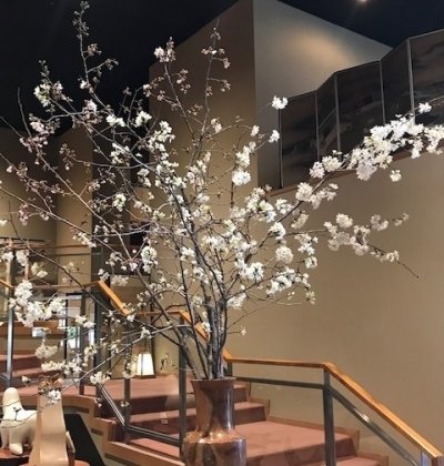 桜が咲き始めました。 ロビーは暖かいのですぐに満開になると思います。