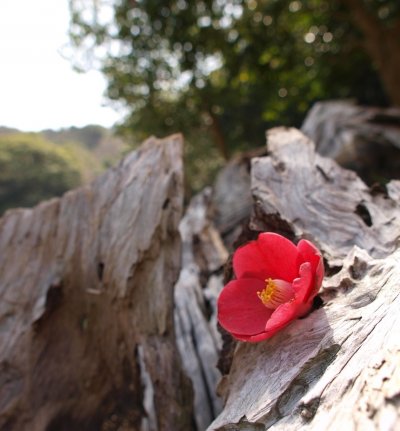 萩市笠山 虎ヶ崎にある椿群生林では、約10haの敷地に約25,000本のヤブツバキが可憐な花を咲かせ、例年2月中旬~3月下旬頃に見頃を迎えます。背の高い椿の木の樹上に咲く色鮮やかな椿の花と、木から落ちた“落ち椿”が地面を赤く彩る光景をお楽しみいただけます。