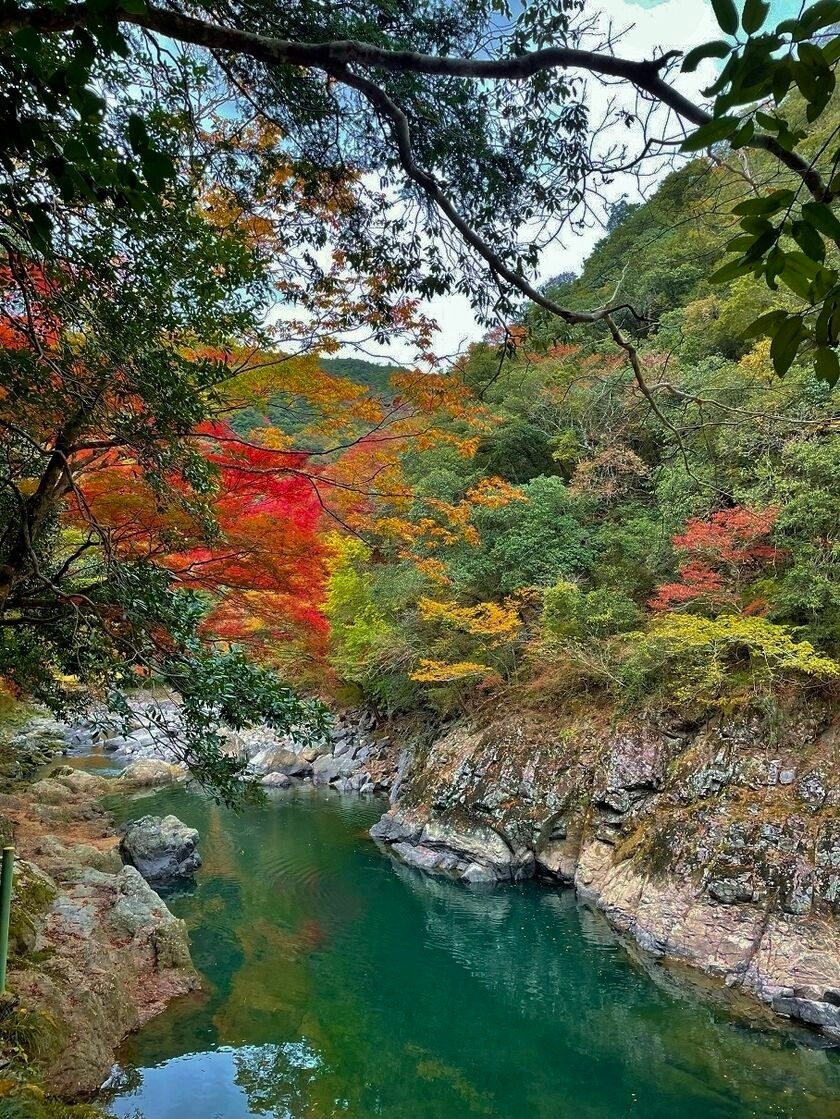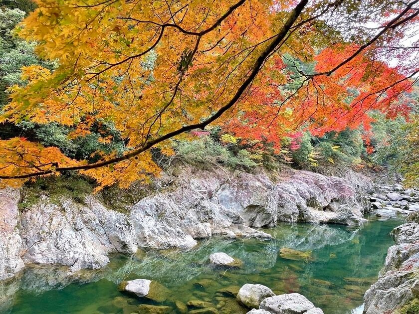 なかでも秋の紅葉は有名で、11月上旬から中旬にかけて色鮮やかな紅葉が水面も赤く染め、渓谷が1年で最も美しい季節に変化します。