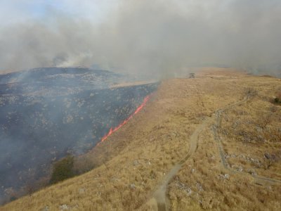 この山焼きにより、草原の維持、森林化防止、貴重な植物や昆虫等の生息環境保全、倒木等による石灰岩の棄損を防止しています。