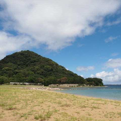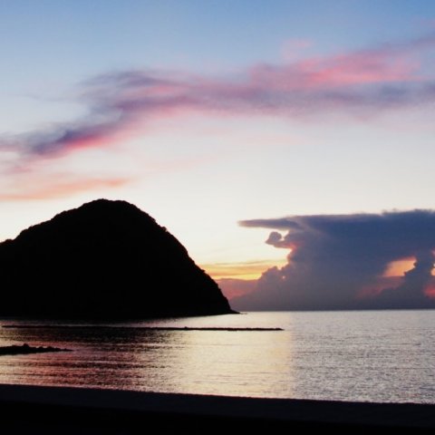 前線が北へ押し上げられて、萩市菊ヶ浜は午後から雨は上がりアスファル...
