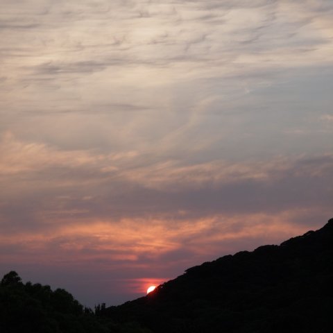 萩は春から夏にかけて指月山の稜線に向けて夕陽が沈んでいきます。