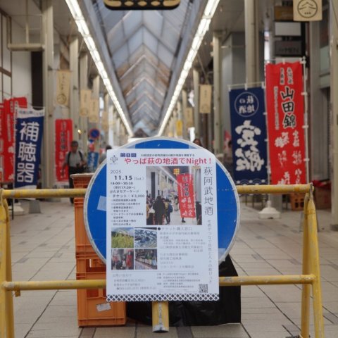 萩市内の田町商店街アーケードで萩の地酒と萩産の食材によるイベントが...