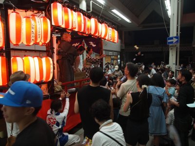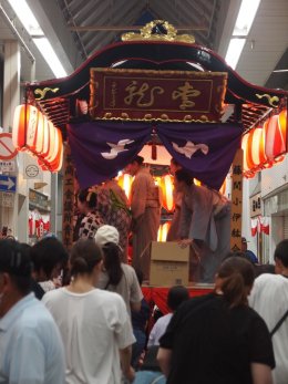 2024年08月04日(日) スタッフブログ -千春楽の出来事- 萩夏祭り ふぁいなる+ 「踊り車」の上でお稚児さんが舞・山車を商工会議所青年部が曳いて廻ります 花柳流社中の皆様 お祭り・お祝い事⇒山口県では餅を蒔く