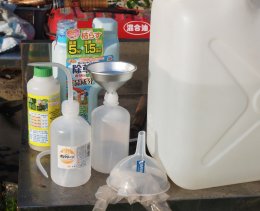 除草剤の成分が太陽光発電パネルに攻撃性のあるpH値やイオンが有るかも知れない・最小限散布から始める・スワン型ノズルの注油器で試す