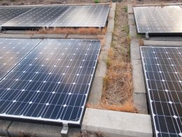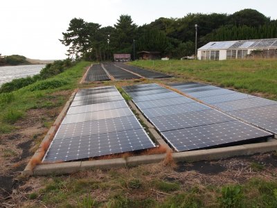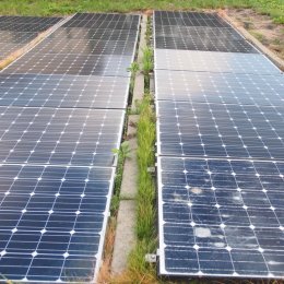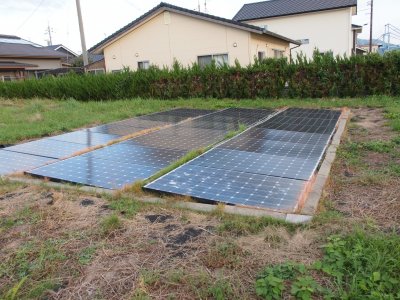 午前中は隣家の影で発電量伸びず手前のパネルの損傷激シ