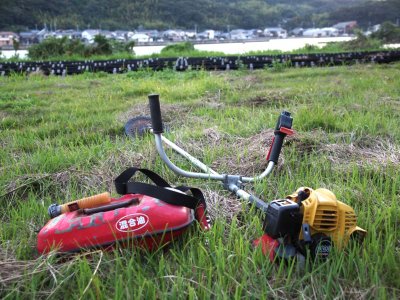 存外に仕事量少なく周辺部法面等を日没まで刈り込む