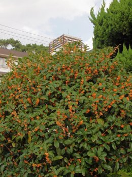 2025年11月02日(日) スタッフブログ -千春楽の出来事- NEW 花が季節を思い出したか? 2週間前には花芽の気配も無かったですが、本日「あさイチ」玄関を開けた途端に金木犀の花の香りが鼻をくすぐりました。蜜柑色の花が樹全体に「まぶれついて」居ります。
