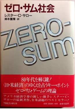 ※「ゼロサムゲーム」はバブル以前からバブル経済期に読まれた リスター・C・サローの「ZERO-SUM SOCIETY」で基本概念が一般化し成長シナイ経済下ではゼロサムゲーム➡参加者の利益と損失の合計がゼロに成るゲーム:麻雀・将棋・囲碁・チェスの様に誰かの利益は誰かの損失の上に成り立つ停滞期のアメリカで論議を呼んだ