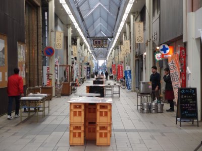 萩市内の田町商店街アーケードで萩の地酒と萩産の食材によるイベントが今年も開催されました。