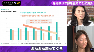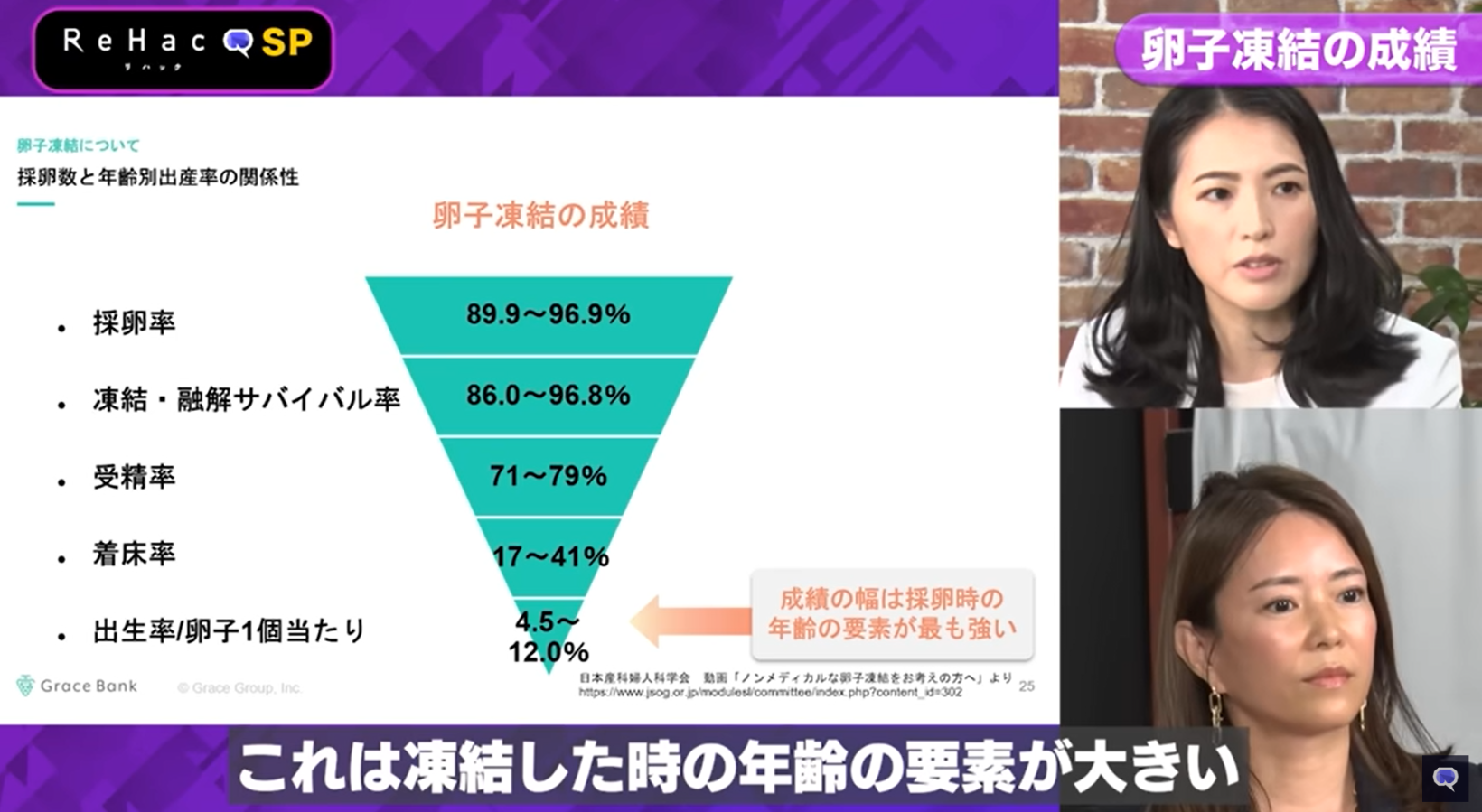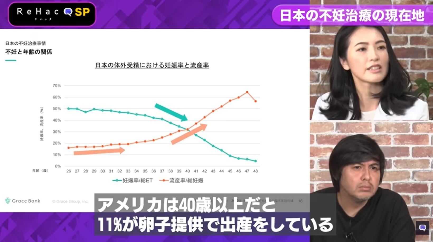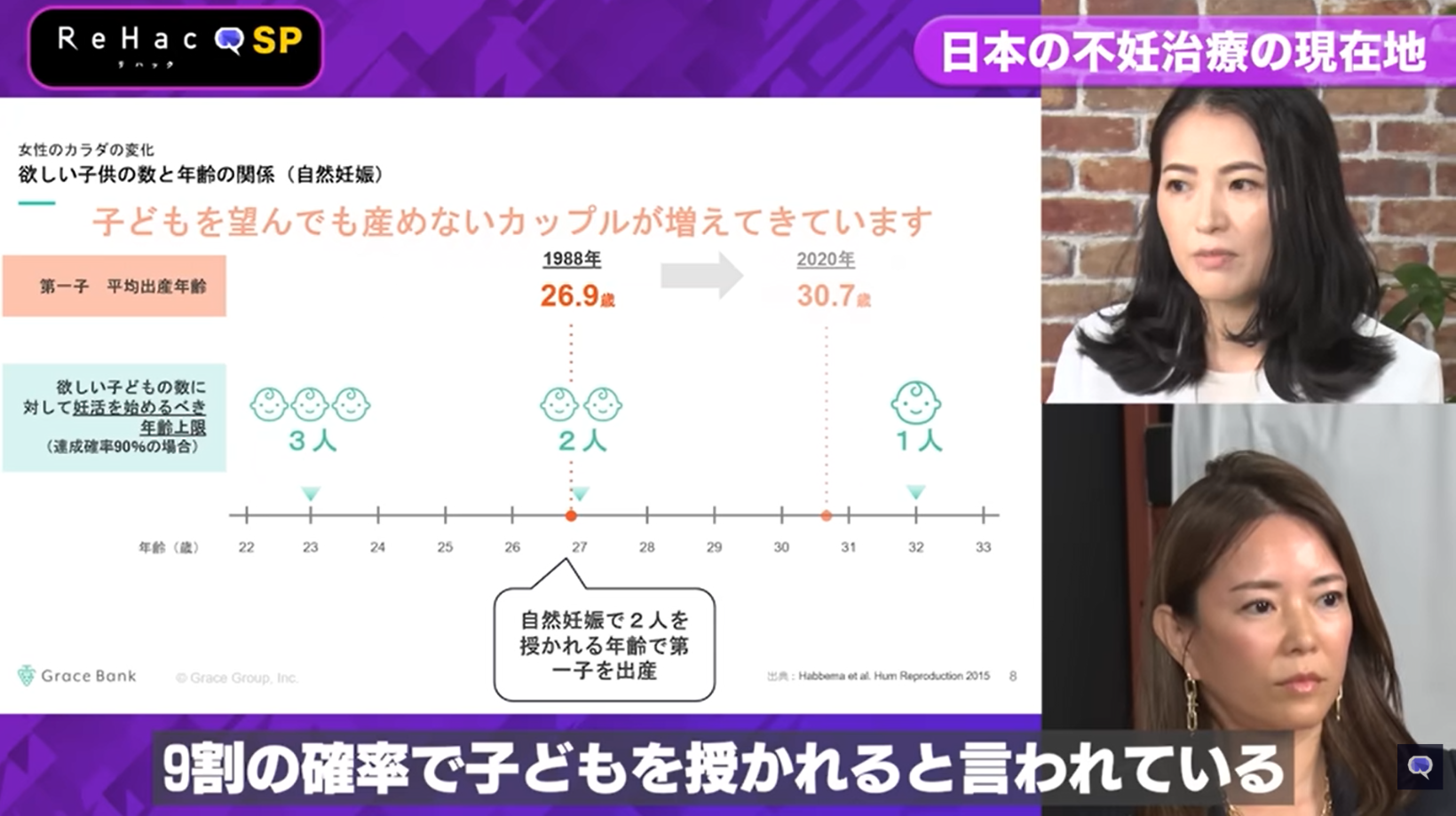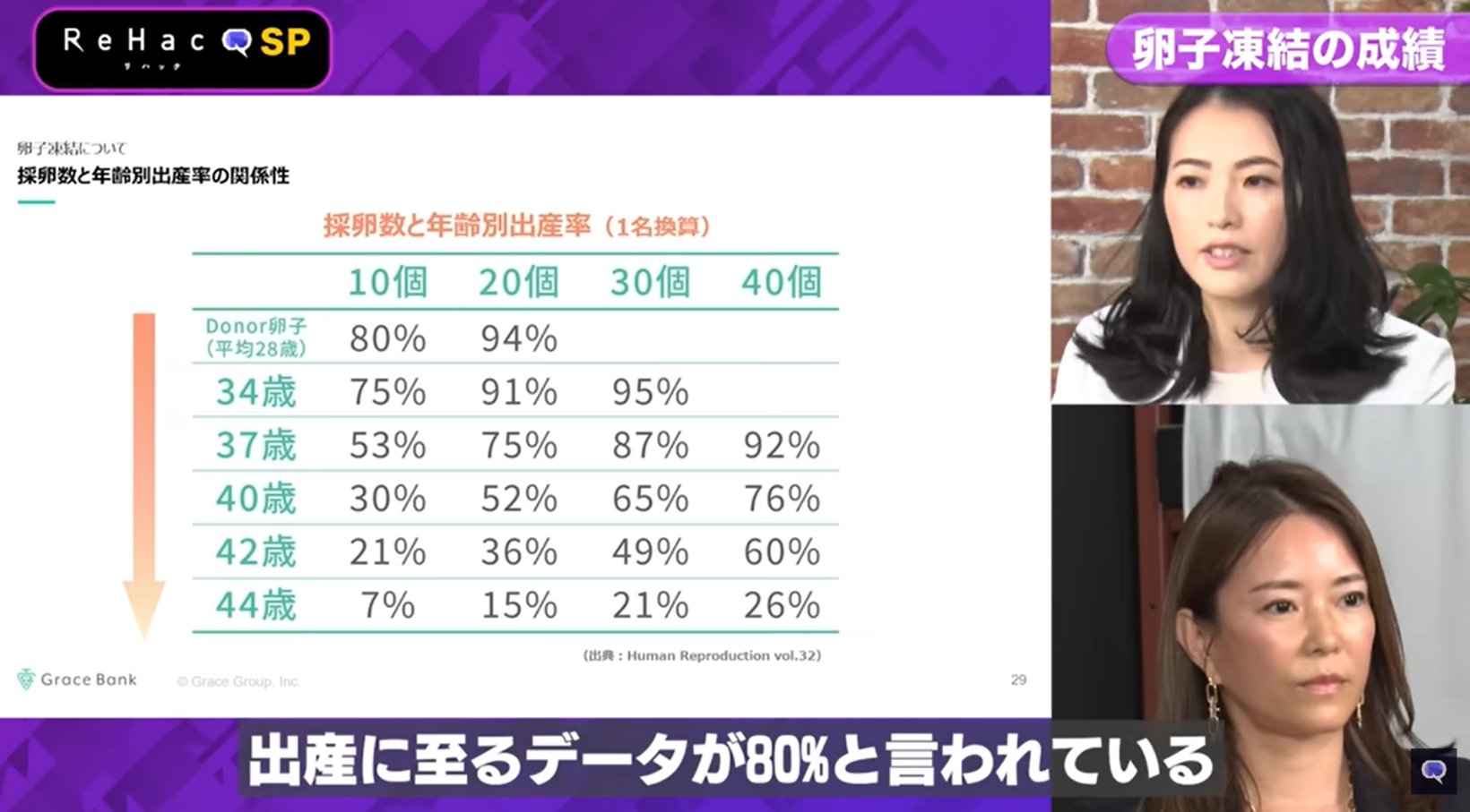 生物学的には 20代から妊活開始し 37歳までに最終児を出産し妊活終了するのが現在の身体の体力・寿命を考えると限界で妊活技術によりこの時間を引き延ばしている。確率論からも早めの対応、バートナーが居るなら受精卵凍結でもして少しでもフレッシュな状態の遺伝的エラーの無いモノを保管し、育児は体力勝負となる為、出来る限りの早期対応策を。