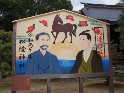 昨日のNHKの地方版で「松陰神社の大絵馬」の話題が取り上げられていたので見て来ました。大絵馬には吉田松陰と正木退蔵を萩高校美術部の生徒12名が1ヶ月半かけて描いたと云う事です。