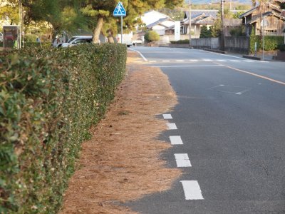 本日の菊ヶ浜 降り積もる松葉