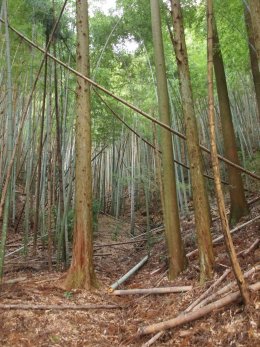 孟宗竹が勢力復活…枝が干渉して切っても倒れない