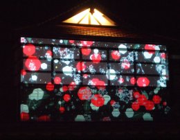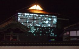 萩の「夜」は早々と訪れますが、「明倫学舎」の「有備館」前ではプロジェクションマッピングが、田町商店街ではクリスマス~イルミネーションが控えめながら催されています。