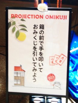 手を叩くと「おみくじ」を引くように「プロジェクションマッピング」で運勢占いが出来ます。大吉~凶まで出て来ます。