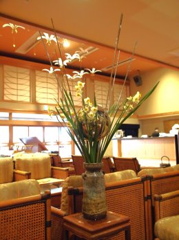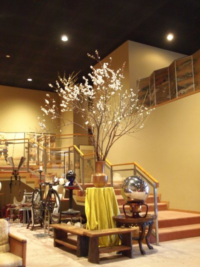 学生時代に上京して来た両親と見たホテルオークラのLOBBYの装花の梅の花が凄かった。枝振りの良い梅の植木をバッサリ根元から切ったのが大きな水盤の様な水面から生えているように飾られていた。コレを再現しようと試しています。一番良い時は一瞬に過ぎ去るがコノ一瞬の儚さ移ろいが日本の美意識「もののあわれ」と習った様な・・・。