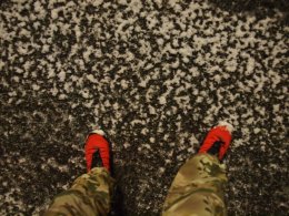 砕石の様な氷の塊が一面に広がる・踏めば靴の下で砕ける