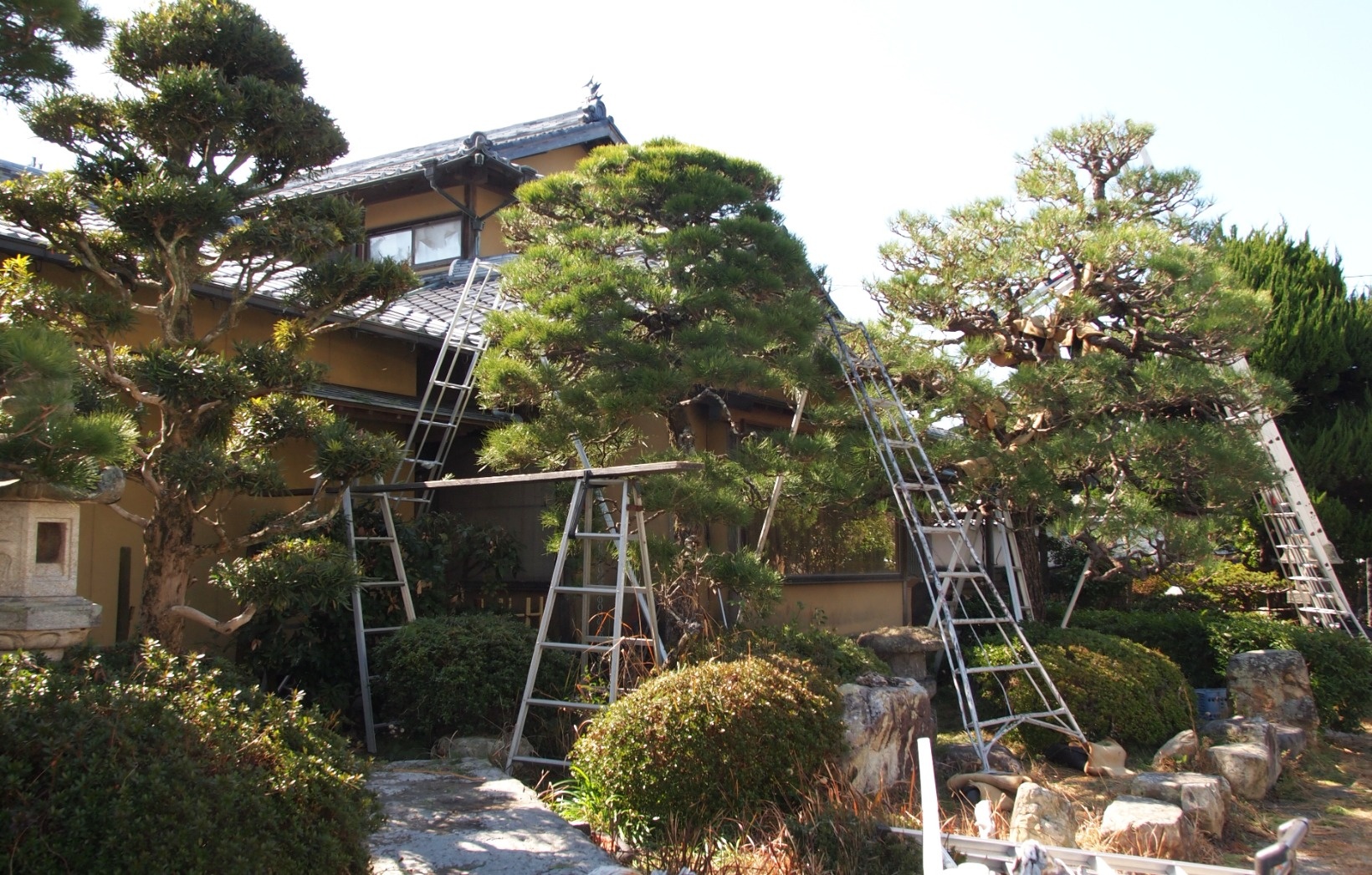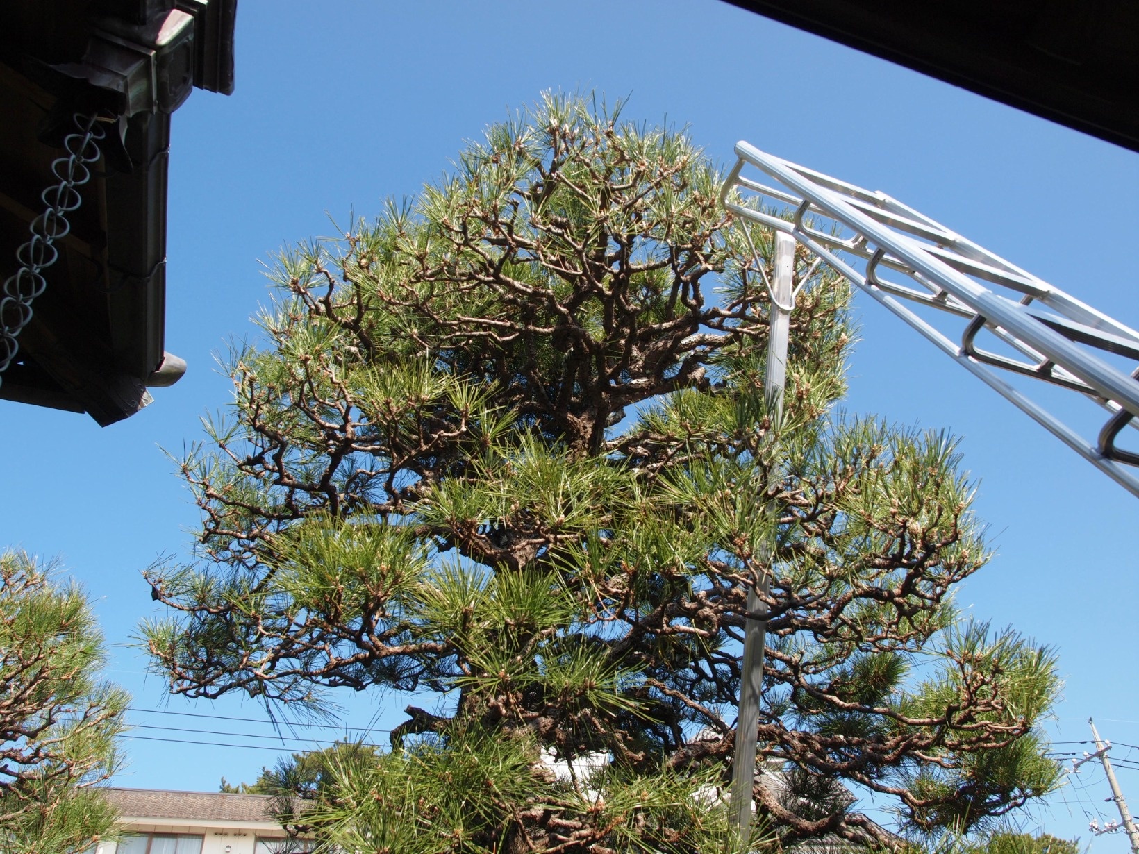 山口県にはマダ「春一番・はるいちばん」は吹きませんが、空は抜ける様な…まさに「青天井・あおてんじょう」の快晴と成っています。お昼の気温は 11.2℃とソレなりですが゛樹々・植物は動き出しました。庭の黒松の新芽は芽吹いてはいませんが、貴重な幹に近い去年発芽した松の若葉が一部分、葉を黄色くし始めました。日当たりが悪いところは効率良く見捨てて、より良い光を求めて伸び始めます。急いで2本目、3本目を選定作業しないと、これまでの努力が水の泡です。
