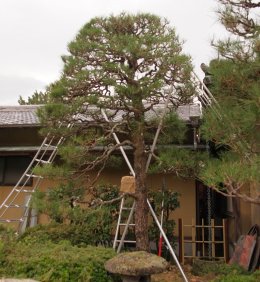 「黒松の選定」・95%終了・眩暈吐気突発性目眩に耳鳴りしながら梯子の天頂に立ち作業コレが現時点限界