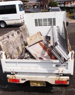 ○○創建の○村くん、風が止んだら取りあえず屋根でパタパタしてた千切れたトタンを外して、その後で協議しましょう。