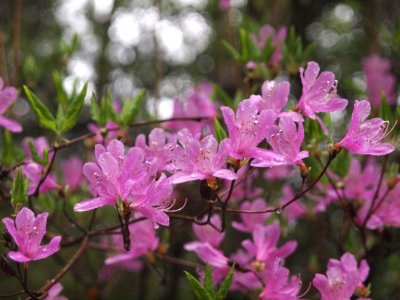 「ヤマツツジ」最盛期・マゼンタ色が薄い緑の新緑に映える(野生)