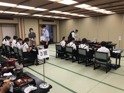 2021年09月28日(火) スタッフブログ -千春楽の出来事- 9/28 修学旅行のお客様 本日は少人数ですが、県内の修学旅行のお客様にご宿泊いただいております。 昼は窯元で萩焼体験と萩市内の判別行動をされたそうです。 沢山の思い出を作ってお帰りください。