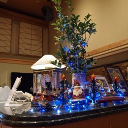 2021年11月19日(金) スタッフブログ -千春楽の出来事- きせつの はながない 萩市菊が浜の千春楽です。 只今の気温は10.2℃、最低気温 は6.3℃でした。海辺にあり比熱の高い海水が近くにあるので大して冷えませんが周りには花が咲いてません。 今年もハロウィンが自粛でクリスマスが再び見直されたのか、どこでも飾り付けイベント、広告が目立ちます。 クリスマスillumination サンタと柊のツリーはのけてピカピカは年越して飾ります 旅館や家の周りの紅葉はまだ発色がパッとしないので、いつもこうなります。