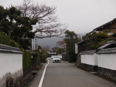 萩は雲が低く立ち込めて時折り霧雨が降っていますが路面を濡らす程ではありません。