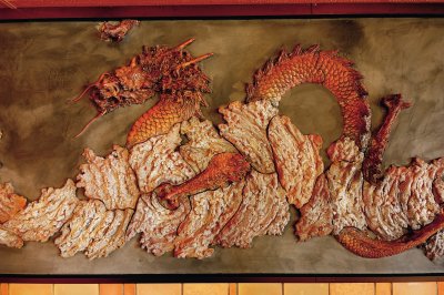 仏具"宝珠"・ほうじゅにアルミの菓子器を合わせリドリー・スコットのエイリアン・コべナントのオマージュ風に「見立て」る地味な鋳物の龍では床の空間が淋しい