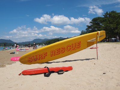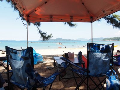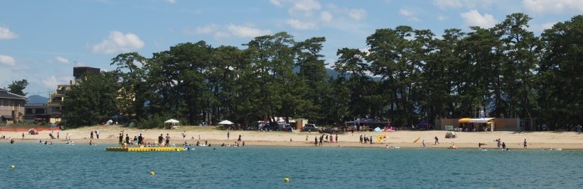 夏休みになって最初の日曜日、菊ヶ浜はいつもの海水浴風景。