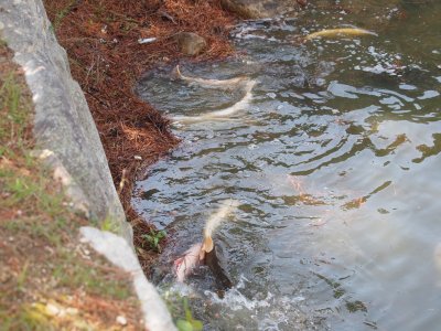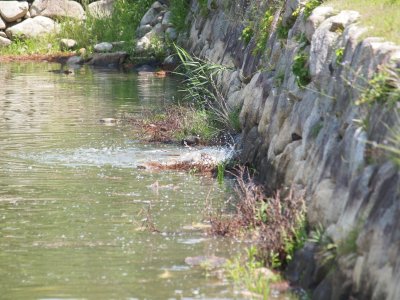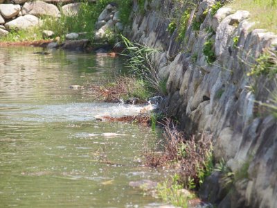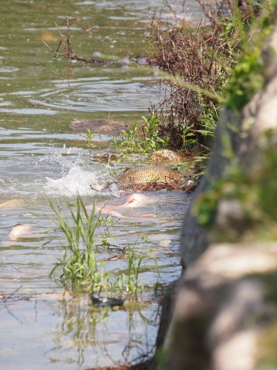 お堀の鯉が産卵しています、恋の季節となっています。