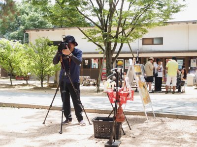 夏枯れで花や木が直ぐに枯れてしまうのでこの時期は「提灯七夕」の飾りつけをしています。