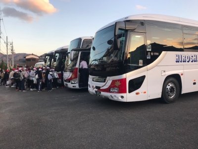赤や黄色に色付くのは園芸種や外来種が多く、周辺の山の木々は色ずく種は少なくもう少し山あいの谷合。