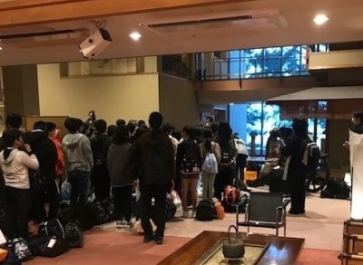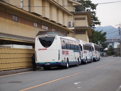 旅館の立地する菊が浜の砂浜の復旧で、観光港周辺へ堆積した砂を減ってしまった海水浴場部分へ移動させる工事が始まりました。