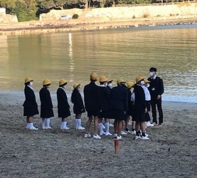 左の画像の見切れている人影は、ロケーションウエディング撮影の一行ですが、昨日研修会で挨拶しに行った担当職員さんが、菊が浜で明日前撮りをすると聞いていたので望遠レンズで撮影していたら人違いで「おおくじくられました」。