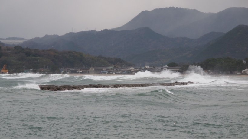萩市菊が浜は"やぶれかぜ"(暴風)が吹き荒れて、雪もチラチラ舞って、この冬一番の寒さとなりました。