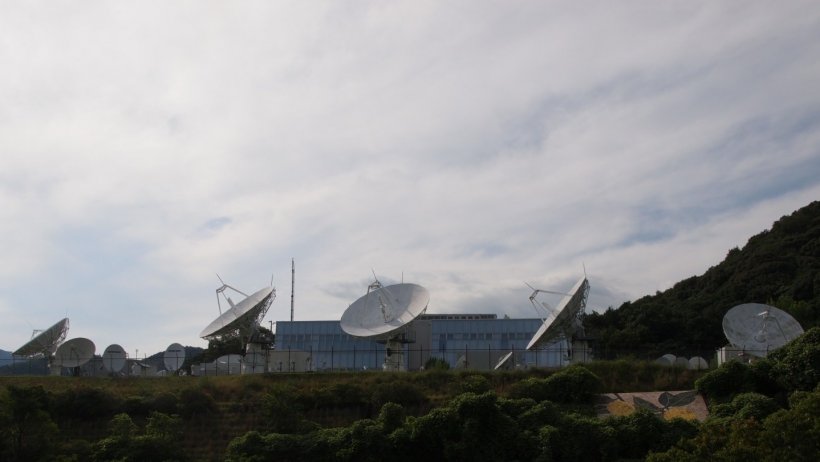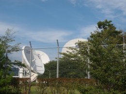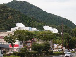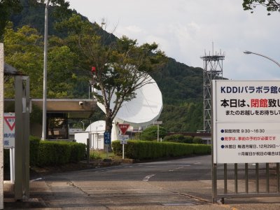 1969年(s44)5月に設置されました。日本の衛星放送の幕開けはケネディ大統領の暗殺のニュース速報だったが、それは茨城の施設だったようですが、太平洋上、インド洋上のインテルサット衛星に対応でき地上のマイクロ回線の相互干渉が少なく台風・地震の自然災害の少ない立地条件からここが選ばれました。今は移動体通信のインマルサット衛星も上がっており、これにも対応しています。赤道上36,000kmの静止衛星に中継して通信しています。