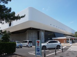 萩の街並に突然現れる巨大なオブジェ、萩市民館です。