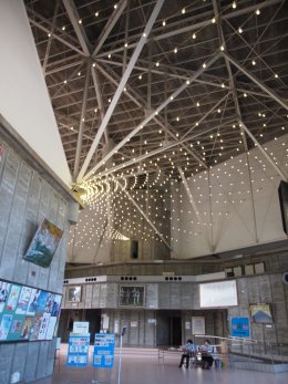 日本のモダン建築の傑作のひとつだと思うが、シルバー人材センターをくっつけ再び壊してみたり、道路の拡幅で外構の池を潰したり、コンビニを入れたりとかなり雰囲気は変ってしまったが、この建物が文化財としての価値があると思ってないみたいだ。隣の芝は青く見えるのでしょう。