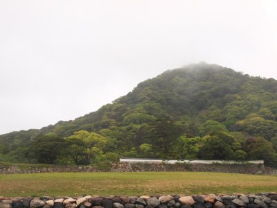 雨に霞む笠山