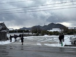 昼間はボタ雪が降ったり氷雨が降ったり…夕方には雪は融けて道路、屋根の雪も有りません。